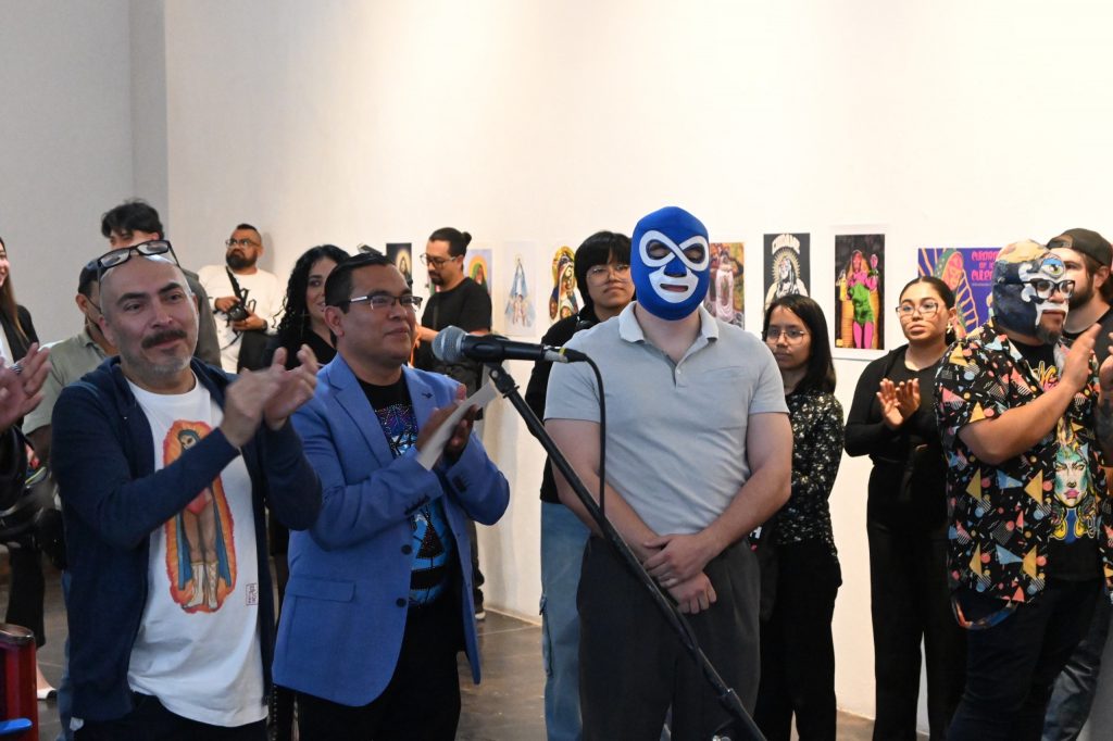 Por otra parte, Beto López, el Mago del Diseño, participa con una serie de carteles en torno a la lucha libre, disciplina que también aborda el maestro Portaveritas, con ilustraciones y piezas que se han publicado en revistas locales, nacionales e internacionales, con mucho impacto social; ambos llenan el espacio con obras que forman parte de la construcción del imaginario de la cultura de los combates sobre el ring, modelando el lenguaje visual y artístico que acompaña a ese fenómeno cultural.