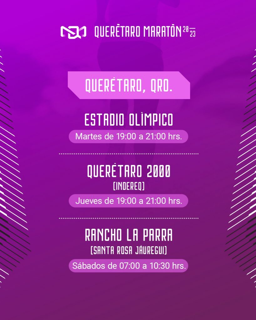 El 1 de octubre se correrá la edición 2023 del Querétaro Maratón y ya muchos se están preparando para participar 5, 10, 21 o 42 kilómetros. En la página oficial de Facebook de la carrera se anunció que a partir de este 27 de junio habrá entrenamientos gratuitos.