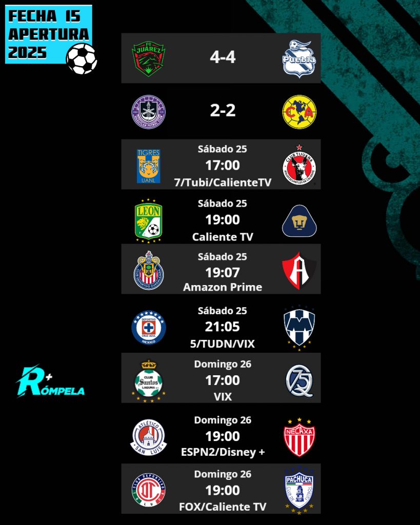 Continúa la Fecha 15 del Torneo Apertura 2025, por esta razón te compartimos la previa de la Jornada Sabatina en la Liga MX, con el Clásico Tapatío como