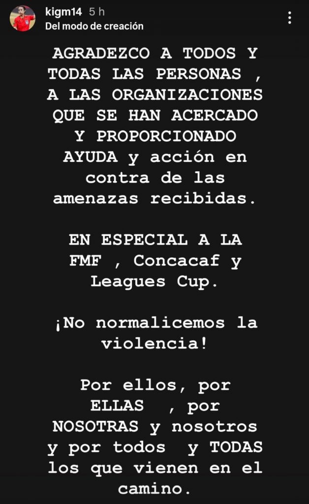 Katia Itzel García, árbitra central del partido de Leagues Cup entre Rayados de Monterrey y el Cincinnati dio a conocer que recibió amenazas en redes sociales por su trabajo en dicho partido, por está razón la Federación Mexican de Futbol (FMF), la Leagues Cup y la Concacaf le han mostrado su apoyo.