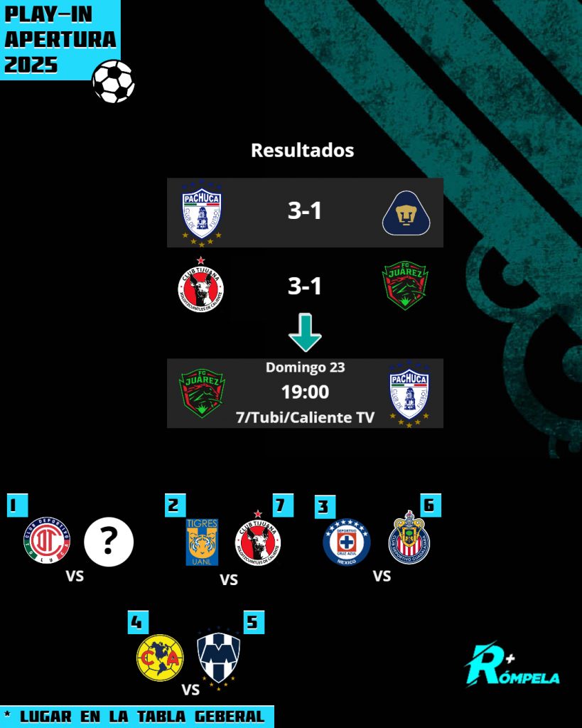 El juego que terminará de definir el camino hacia los Cuartos de Final El Play In del Apertura 2025 promete intensidad, historias nuevas y la oportunidad de romper tendencias. Con un boleto por definirse, dos equipos llegan a instancias definitivas donde no pueden fallar si quieren seguir con vida y meterse entre los mejores ocho equipos del certamen para buscar seguir avanzando hacia el título de la Liga BBVA MX.