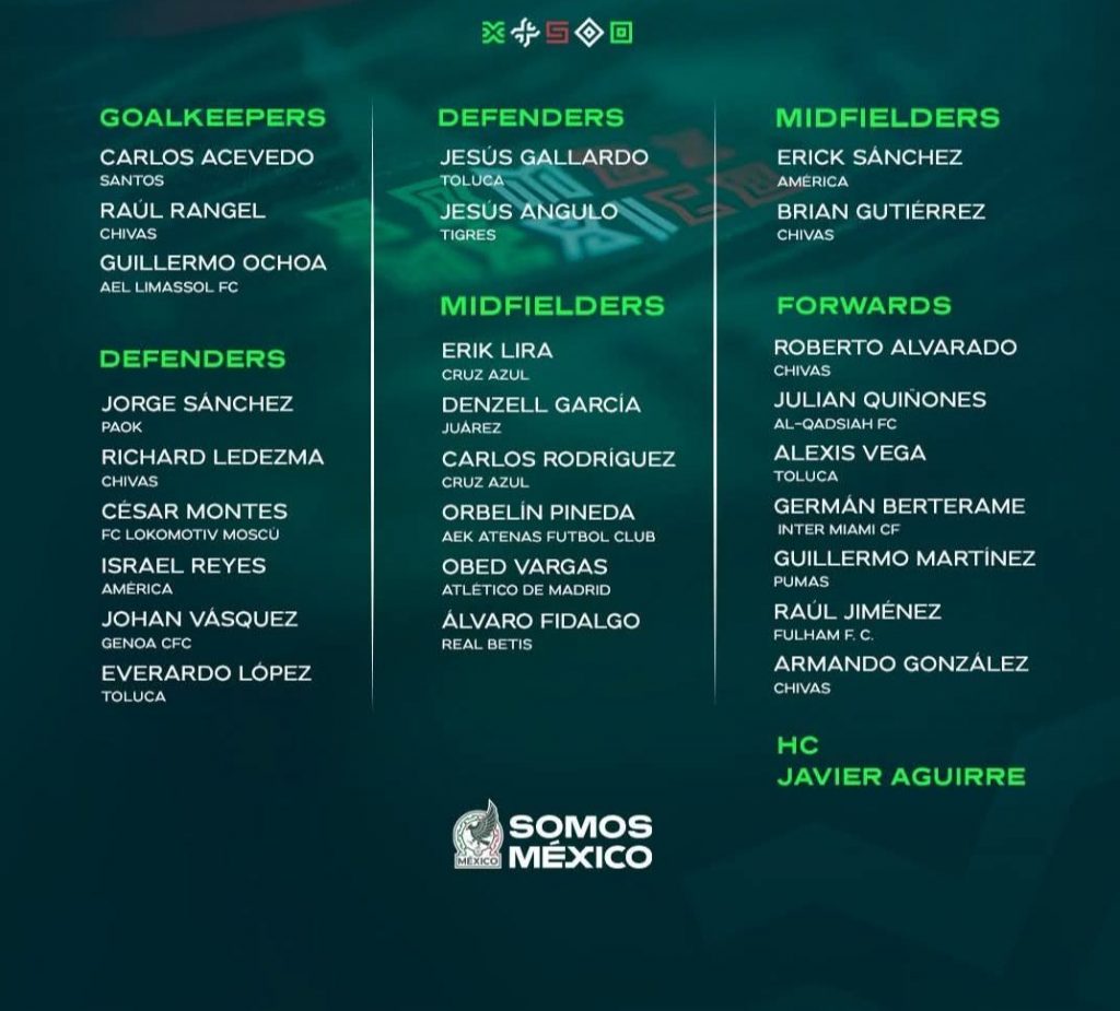 La Selección Nacional de México dio a conocer su convocatoria oficial para los partidos de preparación ante Portugal y Bélgica, encuentros que se disputarán los próximos 28 y 31 de marzo, respectivamente, como parte de la Fecha FIFA.