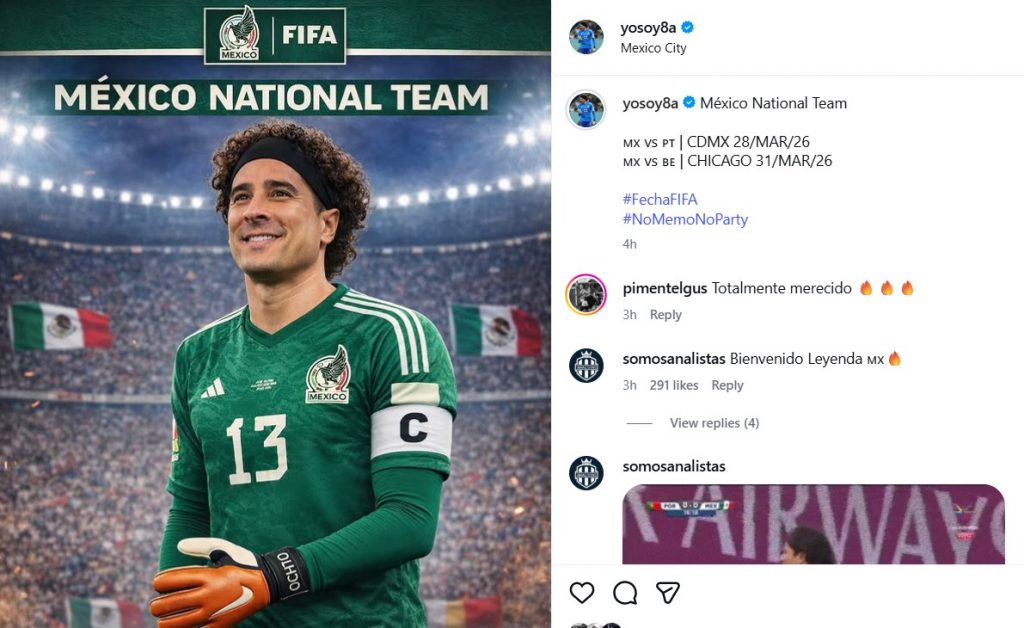 Memo Ochoa compartió en redes sociales una fotografía con su convocatoria a Selección Mexicana, para los partidos de la Fecha FIFA contra Portugal y Bélgica.
