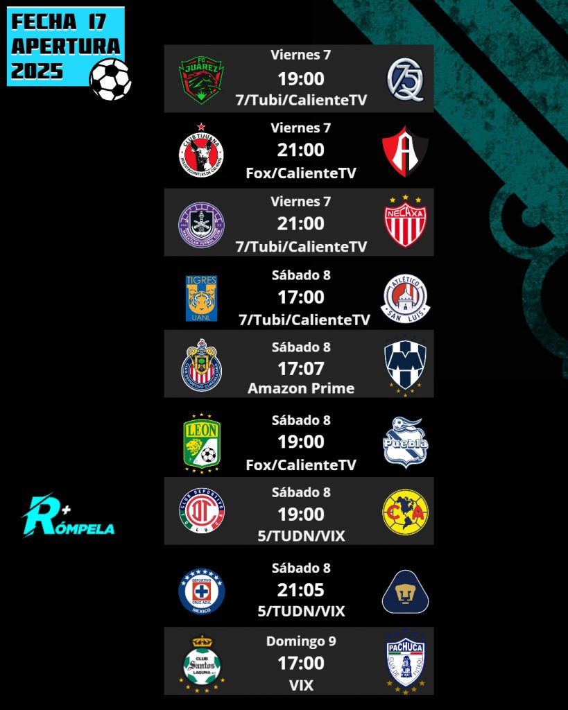 Arranca la Fecha 17 del Torneo Apertura 2025 de la Liga MX, la última de la fase regular y todavía hay mucho en juego para definir el Play-In y posiciones finales de la tabla general, por eso te compartimos la previa de los partidos de este viernes.