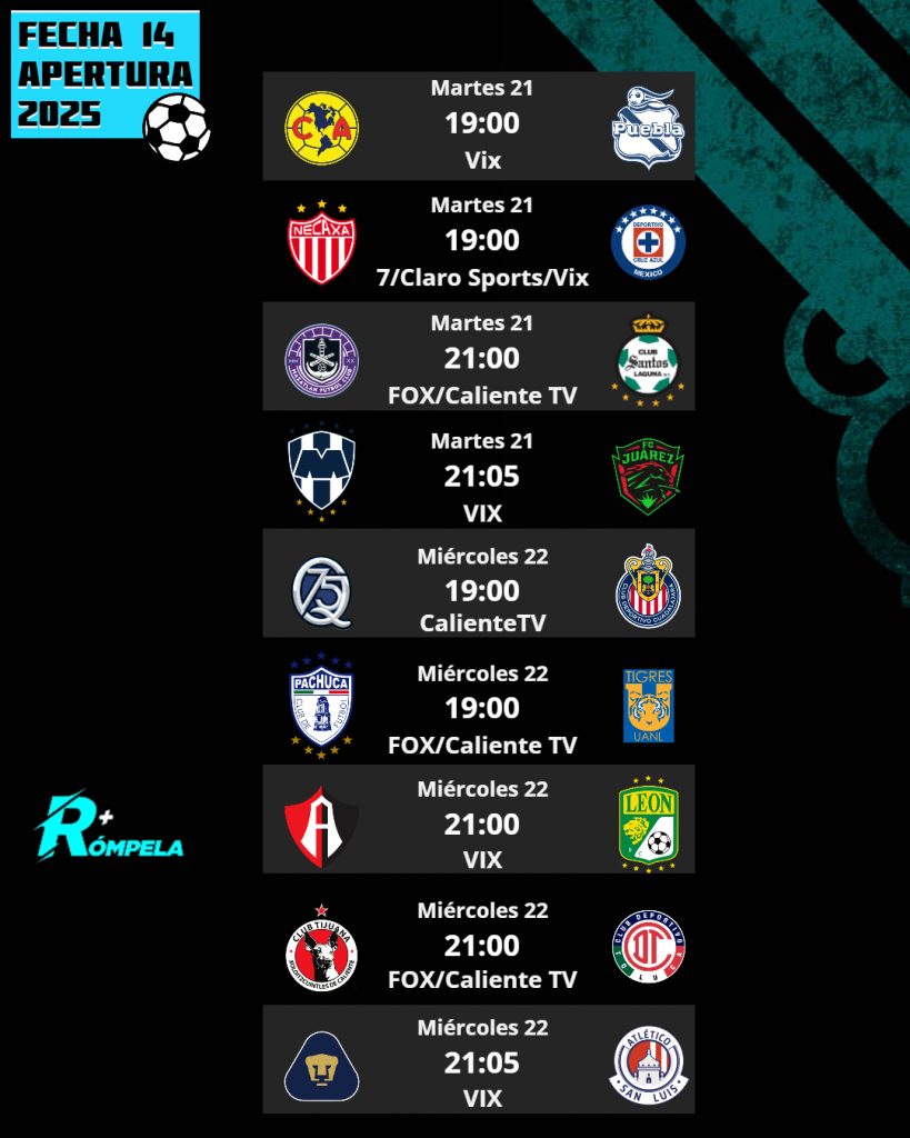 Tenemos Jornada Doble en la Liga MX, así que te compartimos la previa de los partidos del martes 21 de octubre en la Fecha 14 del Torneo Apertura 2025.