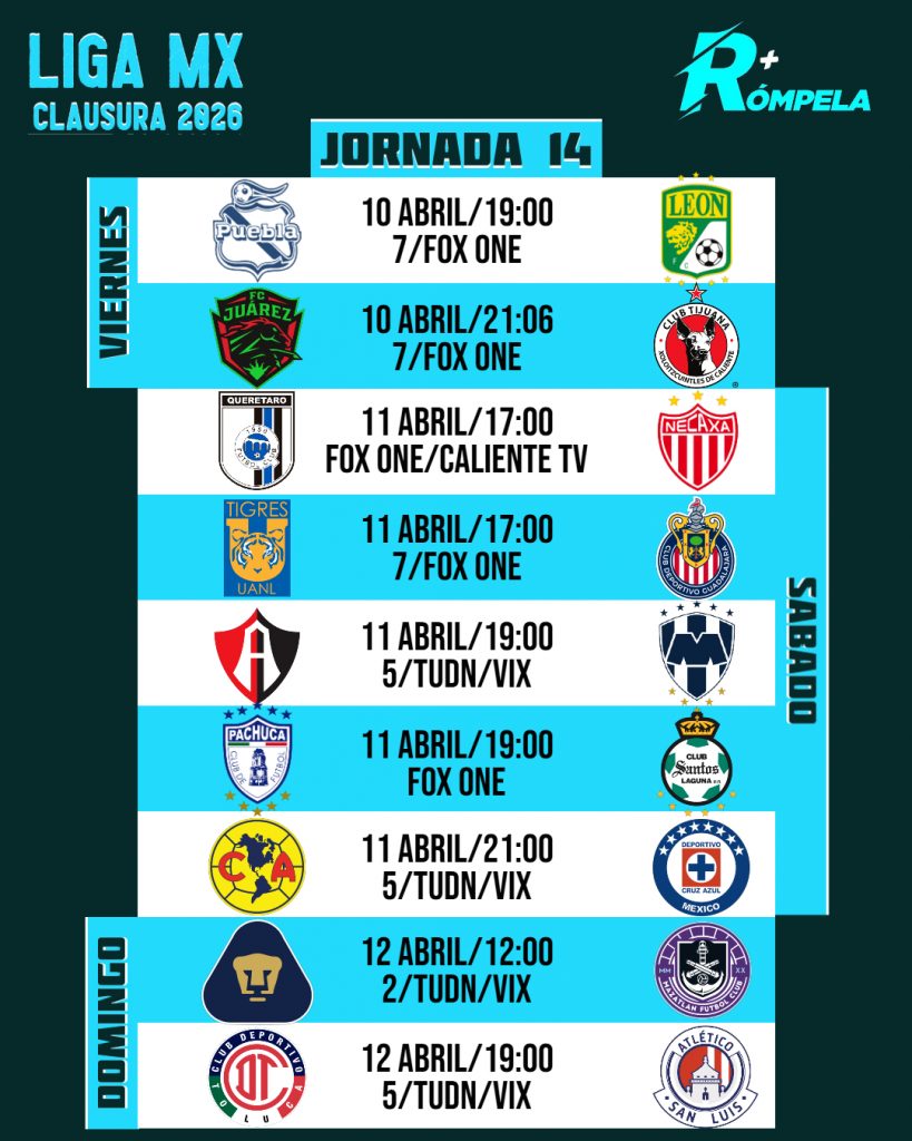 Entramos en la recta final del torneo Clausura 2026 de la Liga MX, porque hoy inicia la fecha 14 con el tradicional viernes botanero, por esta razón, te