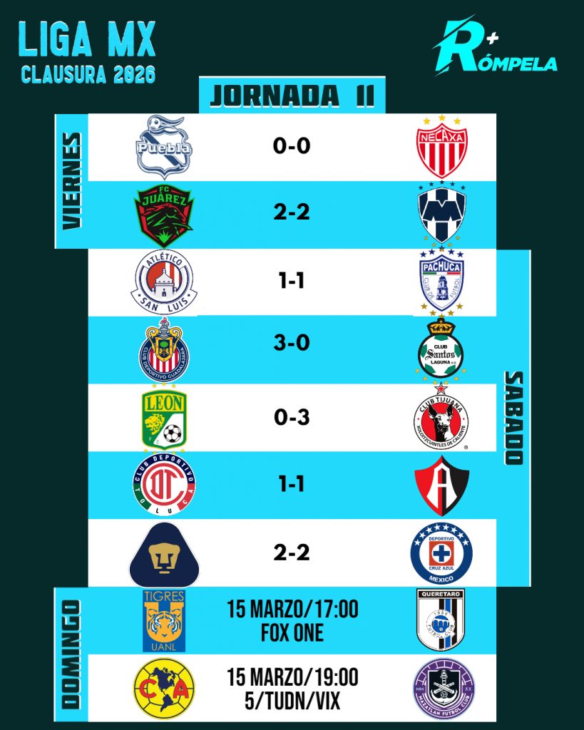 Hoy concluye la fecha 11 del Torneo Clausura 2026 de la Liga MX con dos partidos: el Tigres recibiendo a Gallos Blancos y América ante Mazatlán.